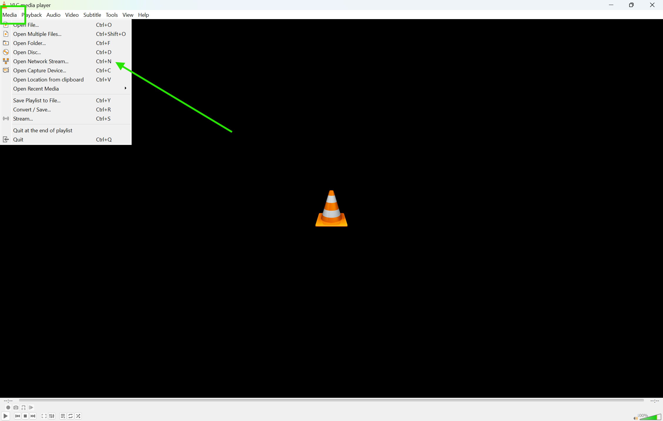 Once installed, open VLC. The interface is clean, but the streaming tools are tucked away in the menu.