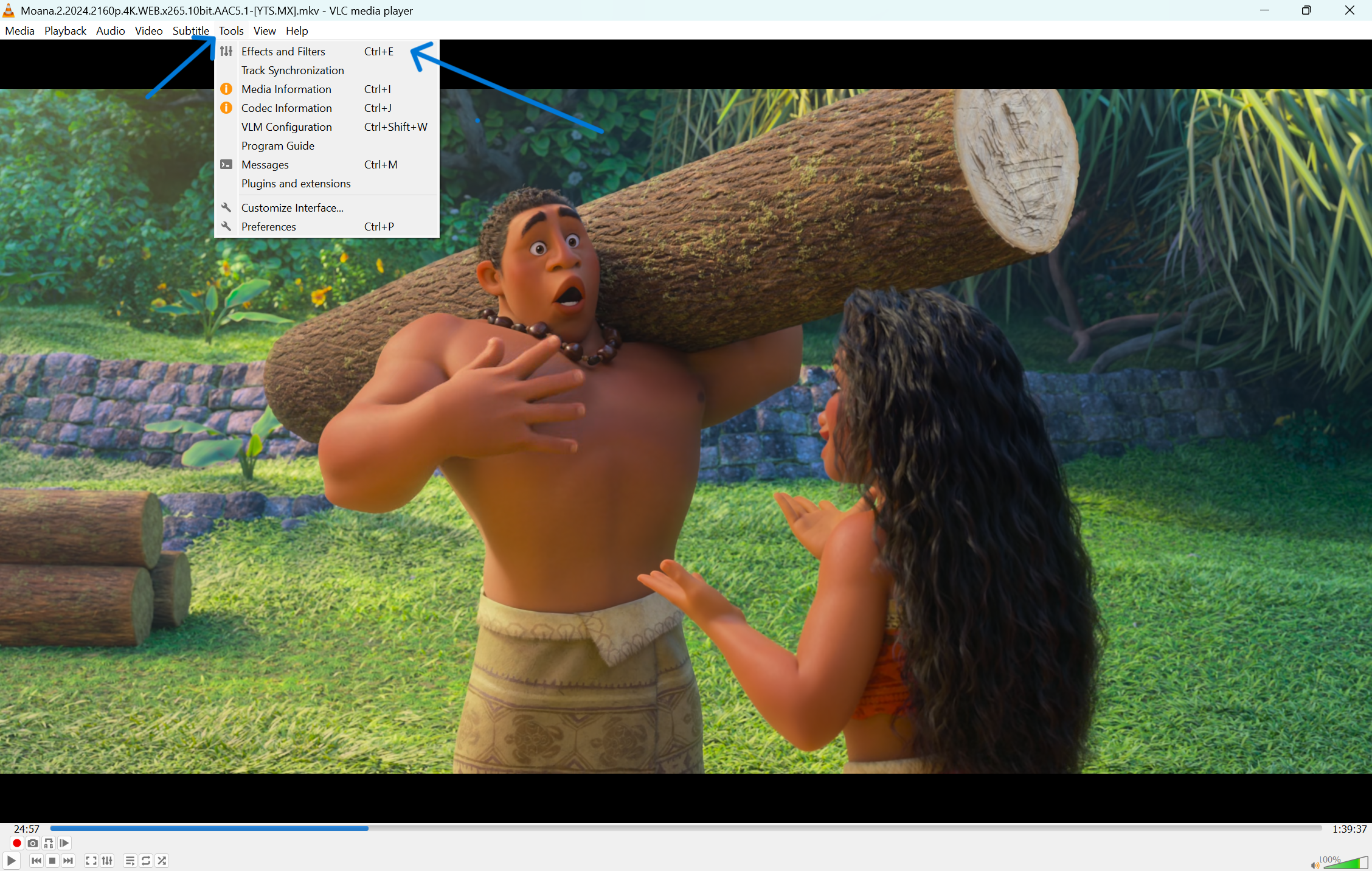 Open VLC and start playing any video or audio file. Having media playing helps you hear the changes as you move the sliders.
